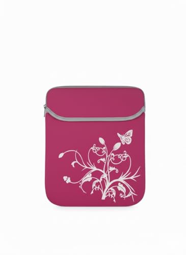 Generic - Laptop Sleeve with Floral Butterfly Design, 2-in-1 Shockproof Protective Cover Bag –10-Inch Tablet Sleeve Case – Soft Neoprene Protective Bag for iPad, Galaxy Tab, and E-Readers – (Black/Hot Pink)