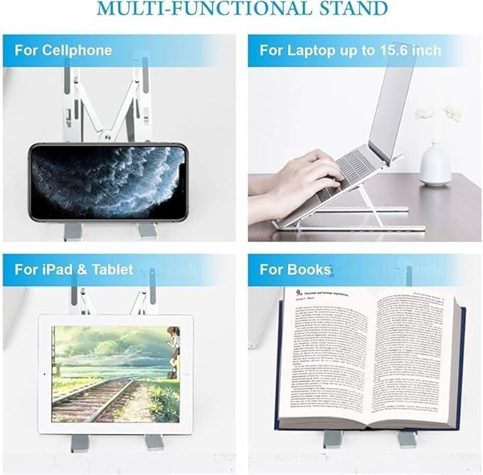 Generic - Laptop Stand, tablets & books holder, Portable Ergonomic Holder with 7 Height Adjustments, Compatible with 10-15.6 inch Laptops, Tablets, Books, Foldable Design with Storage Bag