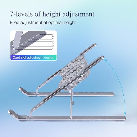 Generic - Laptop Stand with Cooling Fan, Adjustable Aluminum Laptop Riser for MacBook, Portable Ergonomic Cooling Pad with Dual Fans