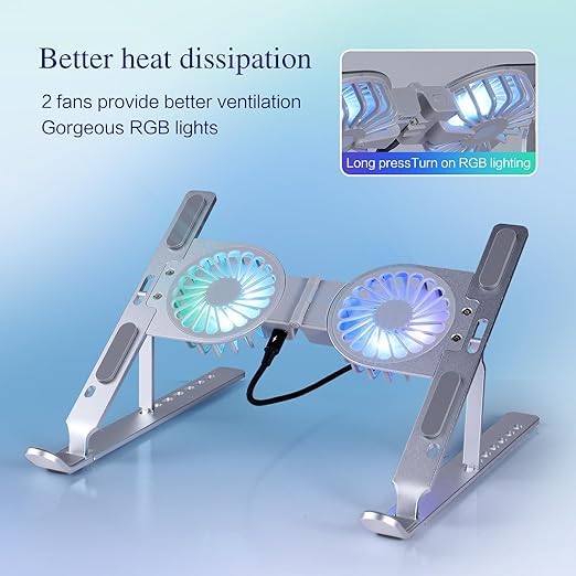 - DUAL COOLING FANS: Equipped with two powerful fans that effectively dissipate heat from your laptop, preventing overheating during intensive tasks and prolonging device lifespan