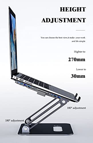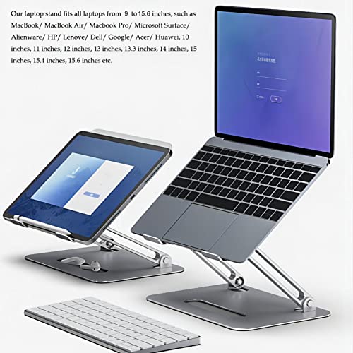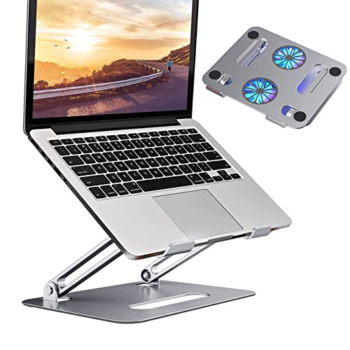 Stemuap - Laptop Stand, with Cooling Fan,Adjustable Ergonomic Portable Aluminum Laptop Holder, Foldable Computer Stand Anti-Slip Laptop Riser Compatible with 9-15.6 inch Laptops, Silvery