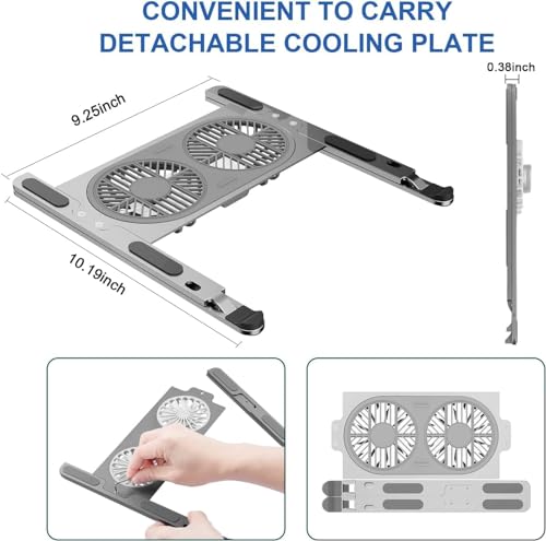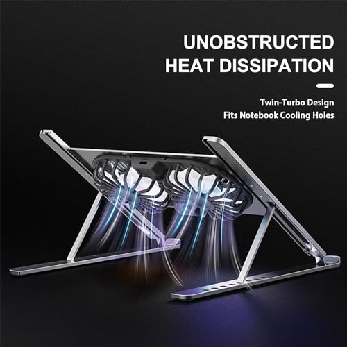 Generic - Laptop Stand with Dual Cooling Fans, Adjustable Ergonomic Notebook Riser, Grey Aluminum