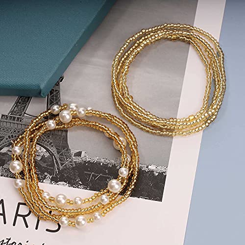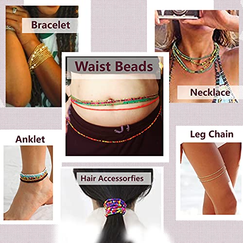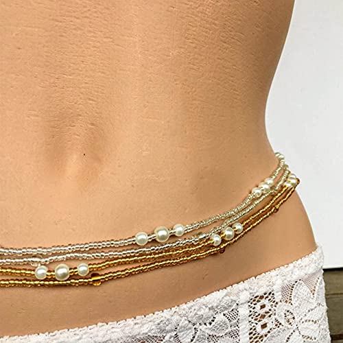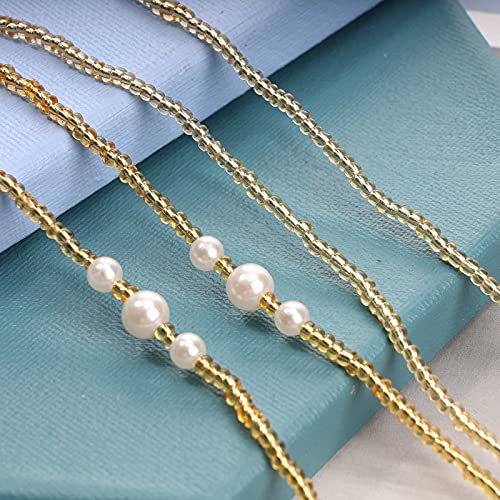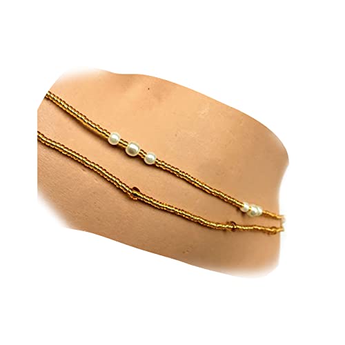 Larancie - 2 pieces Belly Waist Beads for Women Yellow African Waist Beads Bikini Belly Waist Chain Elastic Waist Bead Body Jewelry Bohemian