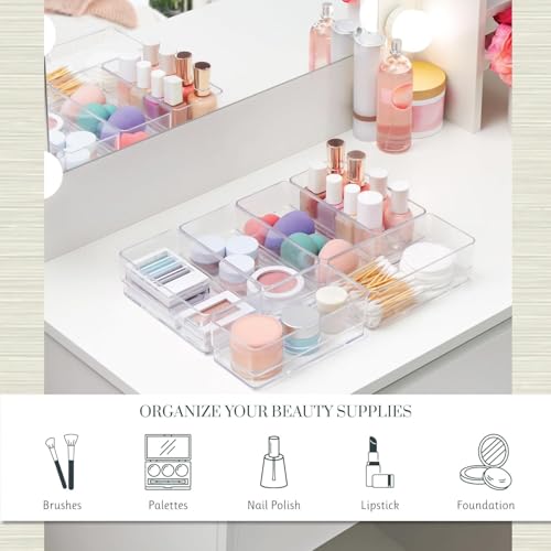 - منظم مكياج أكريليك فاخر: مصمم بثلاثة أدراج واسعة، يحافظ صندوق التخزين الشفاف هذا على مستحضرات التجميل وزجاجات العناية بالبشرة والفرش والإكسسوارات مرتبة بدقة من أجل روتين تجميل أسرع وأكثر سلاسة. يعزز الأكريليك عالي الوضوح الرؤية حتى تتمكن من العثور على ما تحتاجه على الفور، مما يساعد على تقليل الفوضى على طاولة الزينة أو منضدة الحمام مع الحفاظ على مظهر نظيف وأنيق.