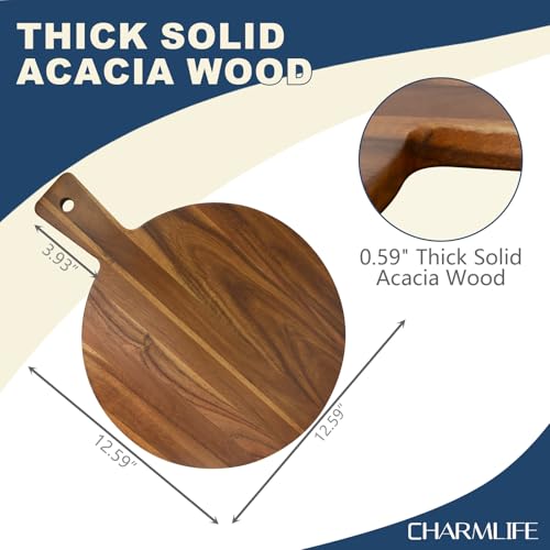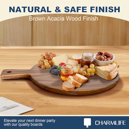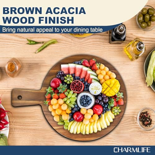 Charmlife - لوح تقطيع كبير من خشب الأكاسيا مع مقبض، للحوم والجبن والخضروات والخبز ومصنعات اللحوم، بتصميم مزخرف للمطبخ وغرفة الطعام، مقاس 41 سم × 33 سم