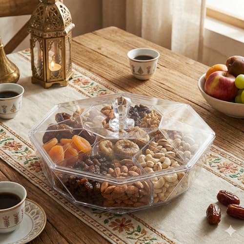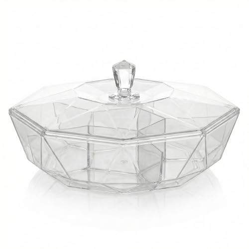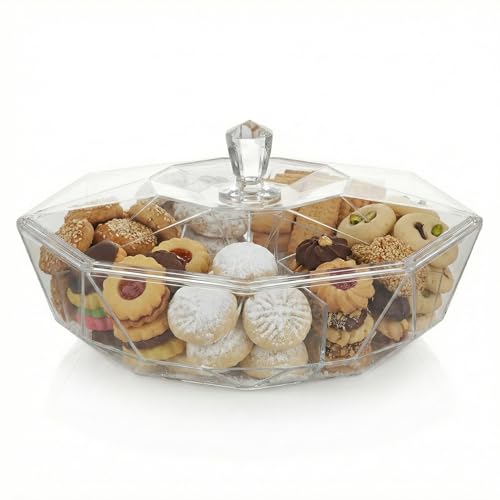 Generic - Large Acrylic Tasley Organizer with Airtight Lid – 6 Section Divided Bonbonniere for Nuts, Chocolates, Ramadan Yamesh, Kakh, Eid Biscuits (Clear)