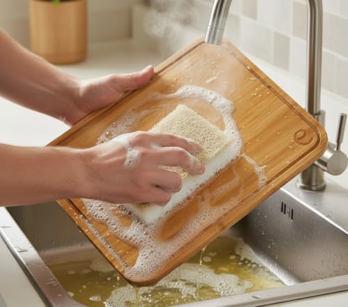- Premium Kitchen Gift thats easy to clean and store - Made from sustainably sourced Mosa Bamboo, our premium natural untreadted chopping boards are easy to wipe clean and we advise hand wash only. No dishwasher. Wash with warm soapy water then leave to dry. Our wow-maintenance bamboo chopping board looking great with occasional food-safe oiling, they can also be huing up in your kitchen with hanging hooks.