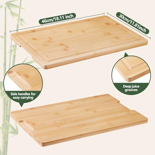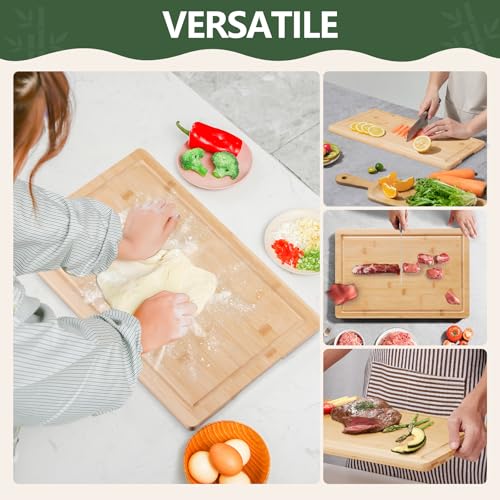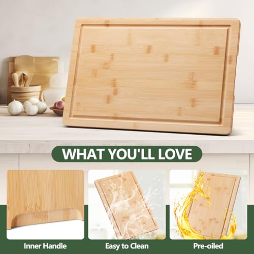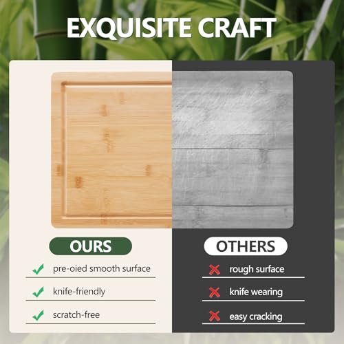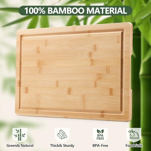 PANDA WE - Large Bamboo Cutting Boards for Kitchen Cheese Chopping Board Wood Cutting Board with Juice Groove and Side Handles