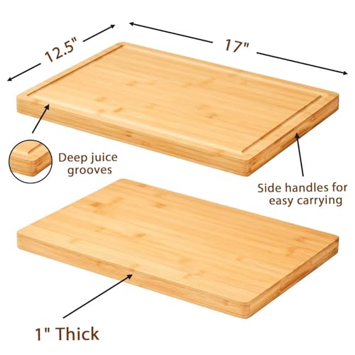 Allsum - Large Bamboo Wood Cutting Boards for Kitchen, 1" Thick Charcuterie Boards, Butcher Block with Juice Grooves & Handles