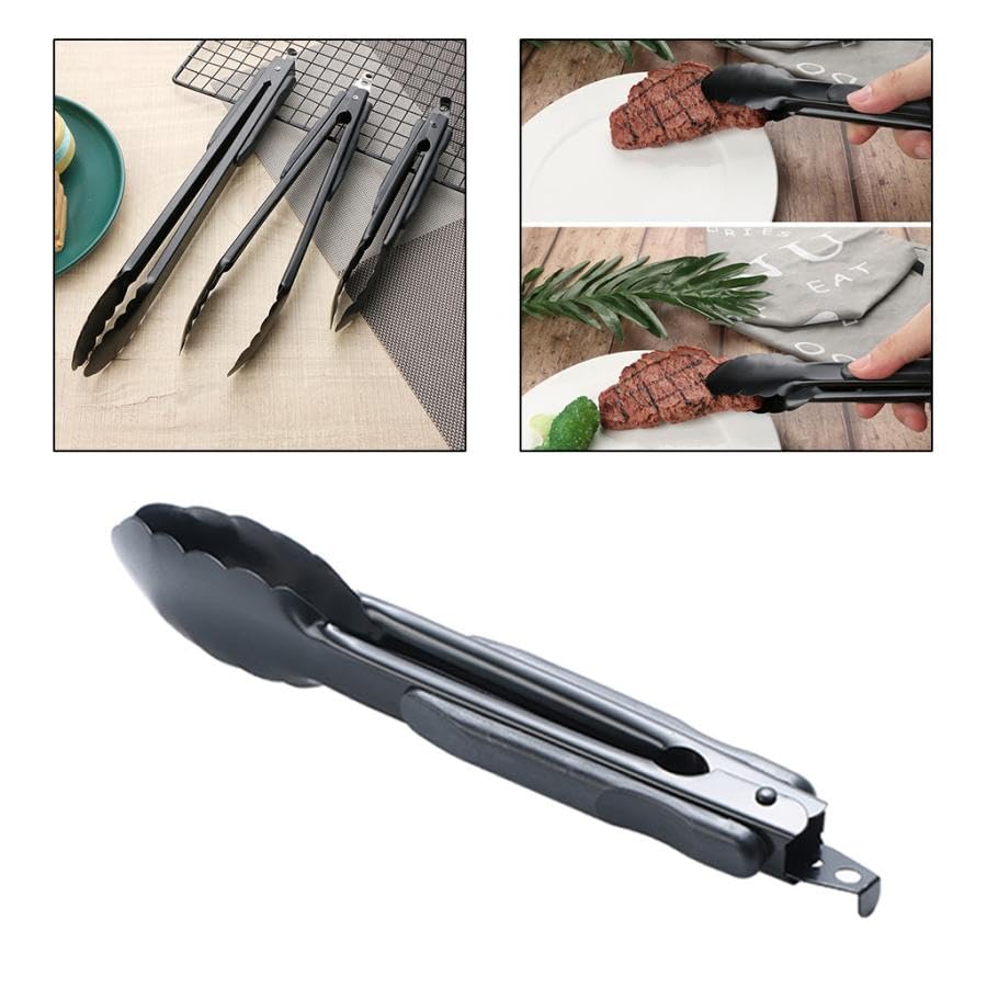- Practical and convenient design: Large black grill tongs designed with ergonomic handle with ridges for a safe and secure grip during use