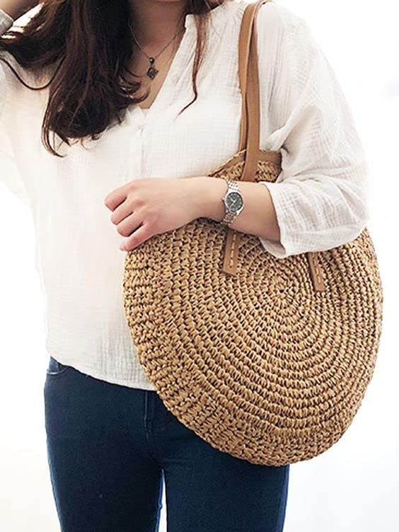 Generic - شنطة يد كروشيه للشاطىء كبيرة - بدون سوسته - حقائب توت للشاطىء