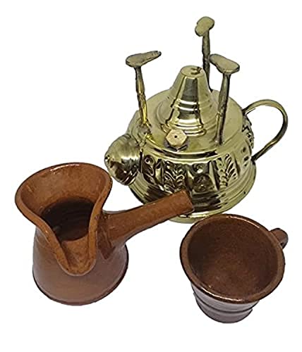 Generic - Large Brass Alcohol Burner with Pottery Pot and Cup