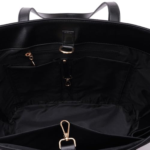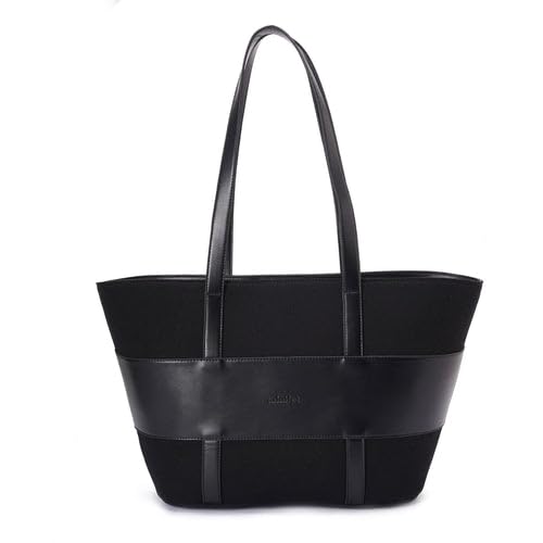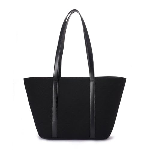 Generic - Large Canvas Tote Bag, Black Leather Trim, Dual Handles, Casual Shopping Shoulder Bag
