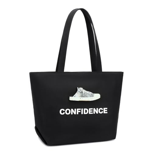 Generic - Large Canvas Tote Bag for Women, 17L Zipper Handbags for Women Inner Pocket for Shopping, Office & Daily Use 40 * 32 * 14 CM- D031-Black