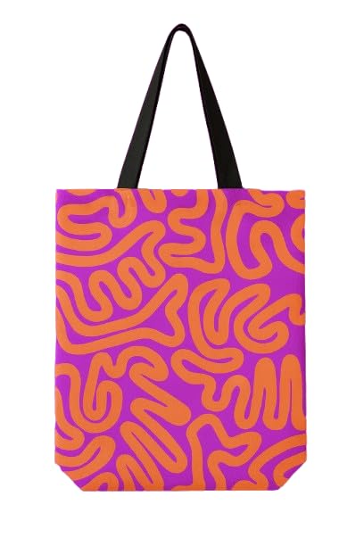 Generic - Large Canvas Tote Bag with Abstract Pattern, Purple and Orange Design