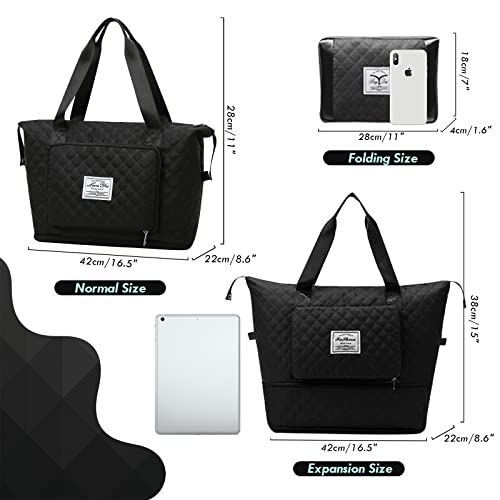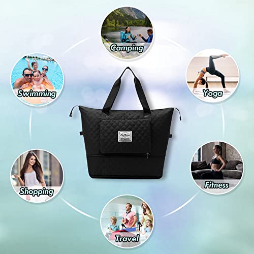 Puosike - Large Capacity Folding Travel Bag, 20L- 36L Foldable Weekend Travel Duffel Bag, Dry Wet Separated Overnight Waterproof Sports Gym Bag, Lightweight Oxford Fabric Shoulder Bag(Black), Black, 防水可扩展