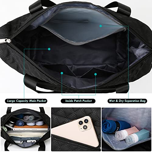 - 【Dry & Wet Separation】Large Holdall Weekend Bag with a high-density waterproof wet pocket in main compartment, you get put your wet clothes, towel and swimsuit in this wet pocket. Make you more comfortable in your daily fitness and journey