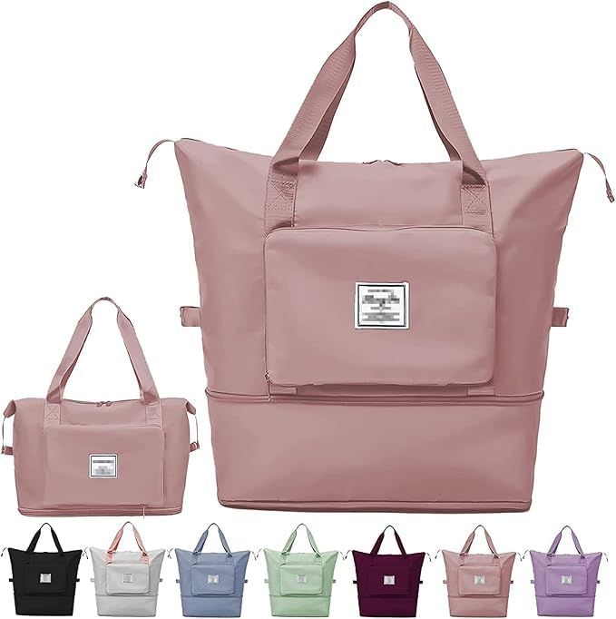 Generic - شنطة سفر قابلة للطي بسعة كبيرة، شنطة امتعة خفيفة الوزن ومقاومة للماء، شنطة دفل للسفر وعطلة نهاية الاسبوع للنساء والرجال (بينك)