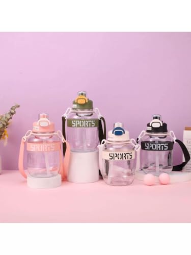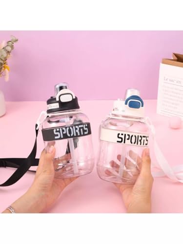 Generic - زجاجة مياه بلاستيكية كبيرة السعة للطلاب للرياضات الخارجية كوب مساحة للياقة البدنية قابل للتخصيص هدايا مع شعار مطبوع عليه - 1100 مل اسود مكس