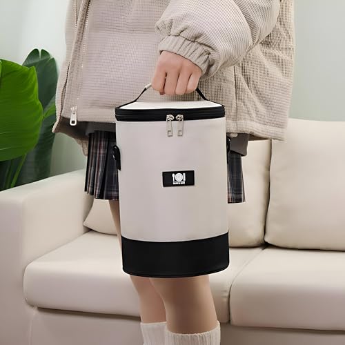 - Round design offers an elegant look and comfortable handling, while its large capacity holds multiple lunch boxes, snacks, and beverages.