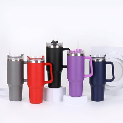 Generic - Large Capacity Vacuum Insulated Mug - 40oz Steel Travel Bottle with Leakproof Lid, Easy Carry Handle, and Straw for Hot and Cold Drinks on the Go (5 pcs)