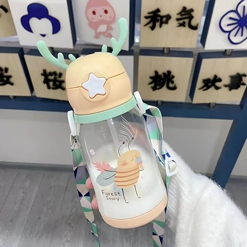 Generic - Large Cartoon Deer Antler Healthy Water Bottle, Easy to Carry and Drop Resistant, Straw and Strap, Perfect for Outdoor Activities and Camping.