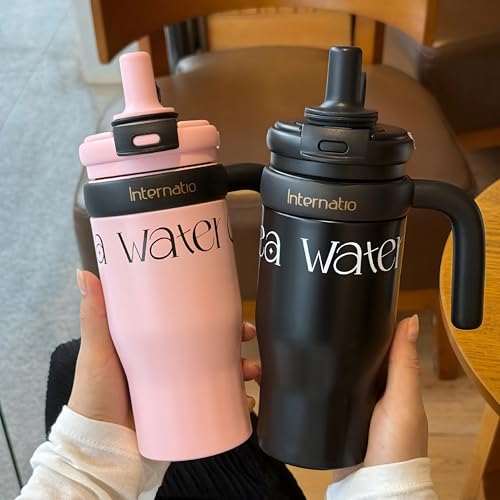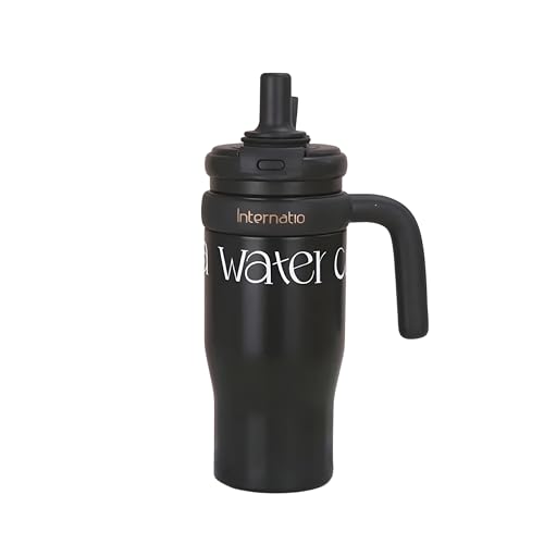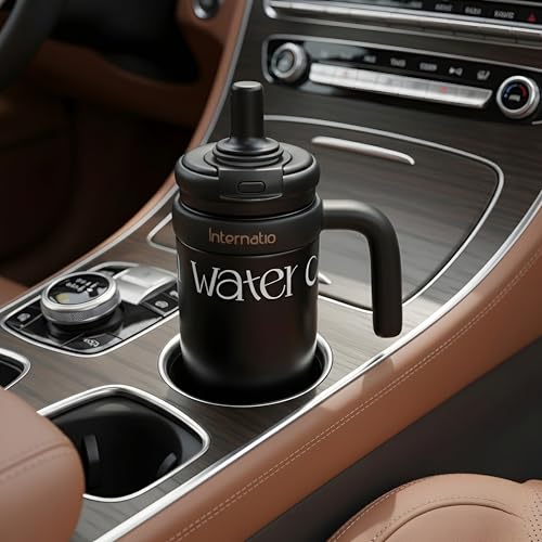 Generic - Large Coffee Mug with Straw and Handle - 550ml - 316 Stainless Steel - Car & Gym - Hot and Cold Drinks - Black