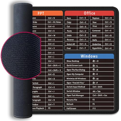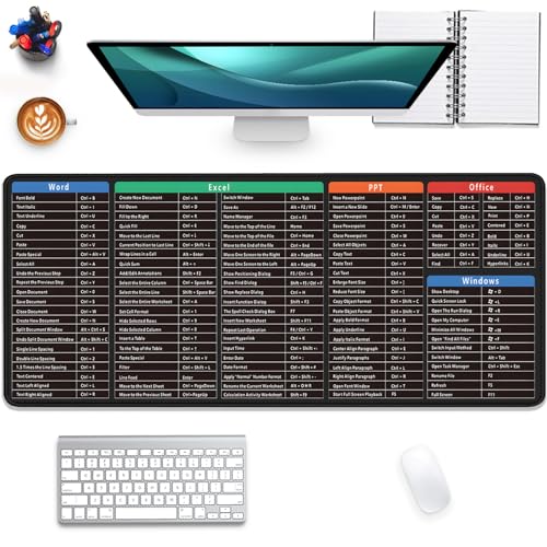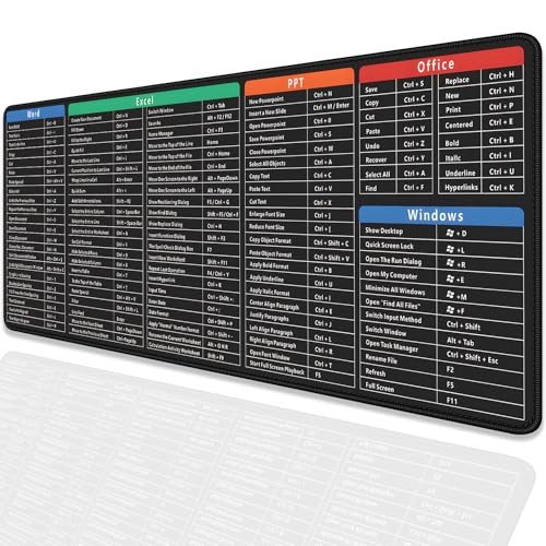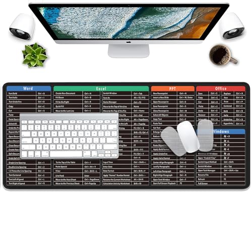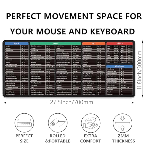 PAKWMFEVGD - Large Extended Gaming Mouse Pad with Word Excel Office Software Excel Shortcuts PPT Windows,Stitched Edges Non-Slip Waterproof Rubber Base Mouse Pad for Office Desk Pad(27.5X11.8 in)