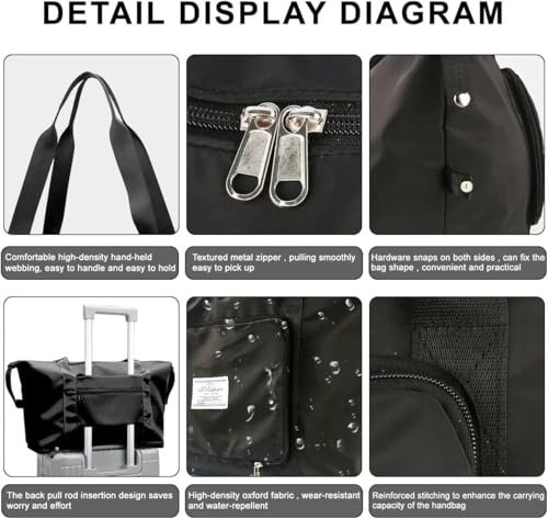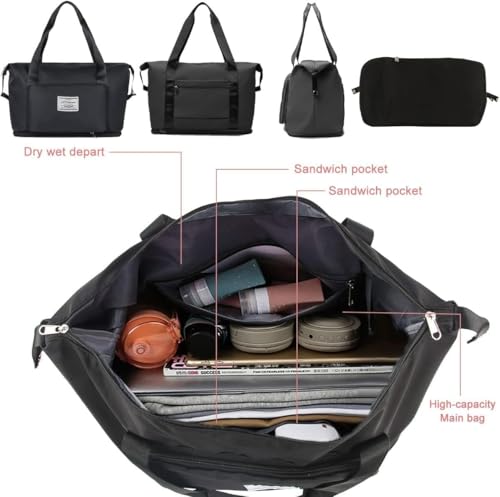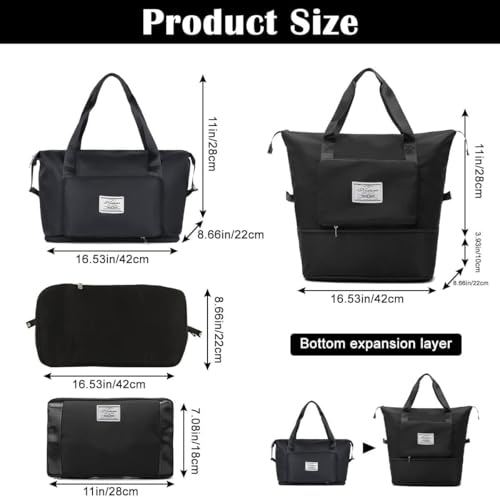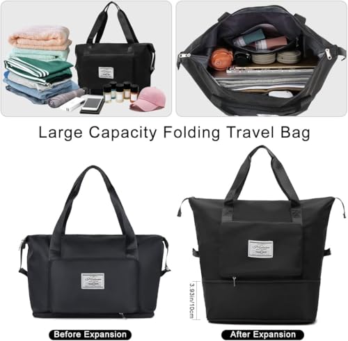 Generic - Large Foldable Travel Bag Waterproof Lightweight Durable Oxford Nylon Fabric with Bottom Expansion for Extra Capacity Perfect for Travel Gym (Black)