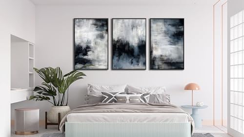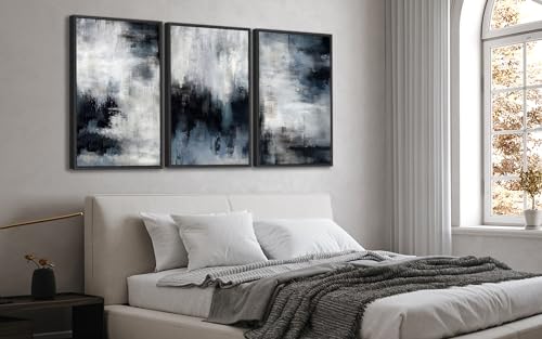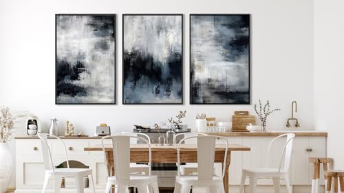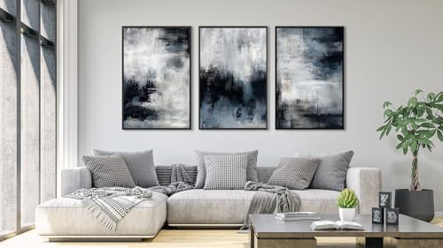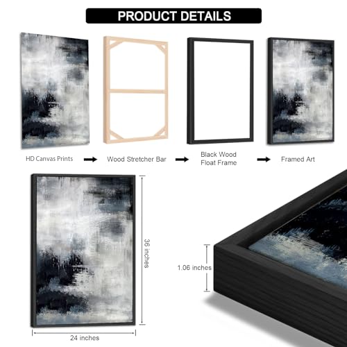 ASDCEUTICALS - Large Framed Abstract Wall Art - Natural Framed Rustic Blue Canvas Pictures for Living Room Modern Canvas Prints for Bedroom, Black Float Frame Art for Home Office Kitchen Decor 24" X 36" X 3p