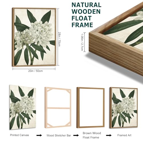 - [Natural Wood Frame] This white floral green foliage plants canvas wall painting is framed by natural wood floating frame instead of MDF or plastic frame, which is more durable, and inject unique charm into your home space