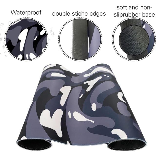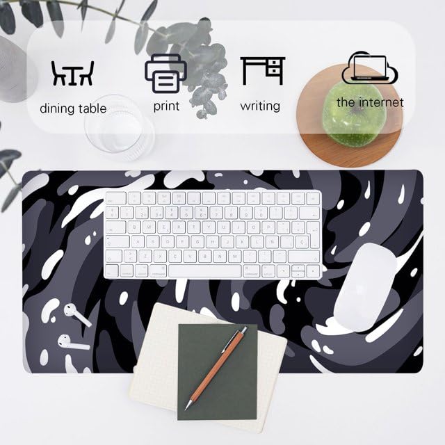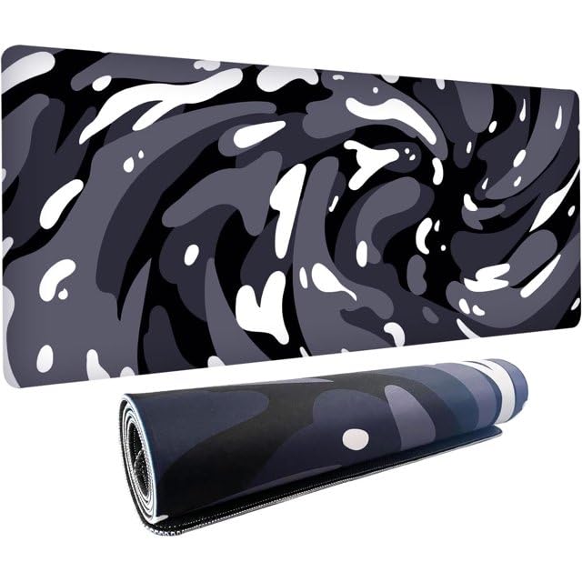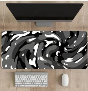 Generic - قاعدة ماوس كبيرة للالعاب - قاعدة ماوس سوداء وبيضاء مع حواف مخيطة، قاعدة ماوس ممتدة XL مع قاعدة مطاطية مضادة للانزلاق، بساط مكتب مموج بالحبر السائل للكيبورد والماوس (31.5 × 15.8 انش)