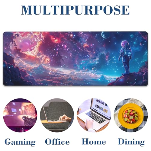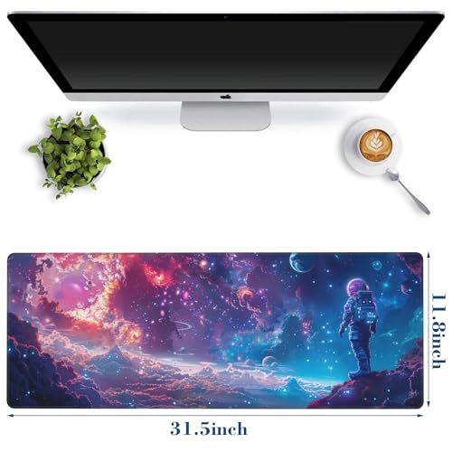 Hanazaoa - Large Gaming Mouse Pad for Desk Astronaut in Space Planets Big Desk Mat Extended Mousepad with Stitched Edge and Non-Slip Base Long Computer Keyboard Mouse Mat for Home Office Work, 11.8 x 31.5 Inch