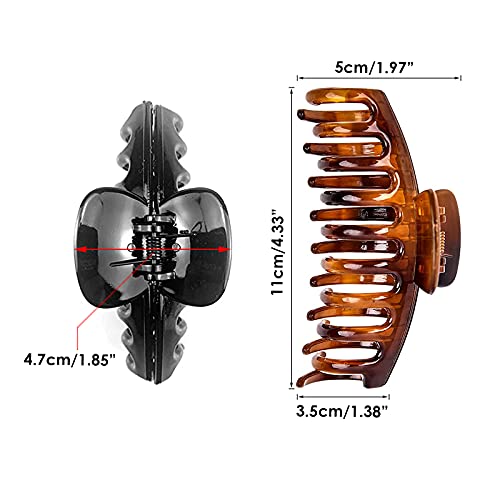 BYOMIGY - مجموعة مشابك شعر كبيرة للشعر السميك غير قابلة للانزلاق قوية التثبيت من قطعتين، مشابك شعر مفتوحة الشكل، مشبك مخلب مقاس 4.3 بوصة للشعر الرطب والجاف للنساء والبنات