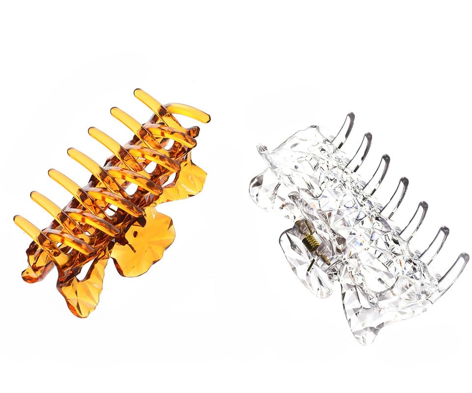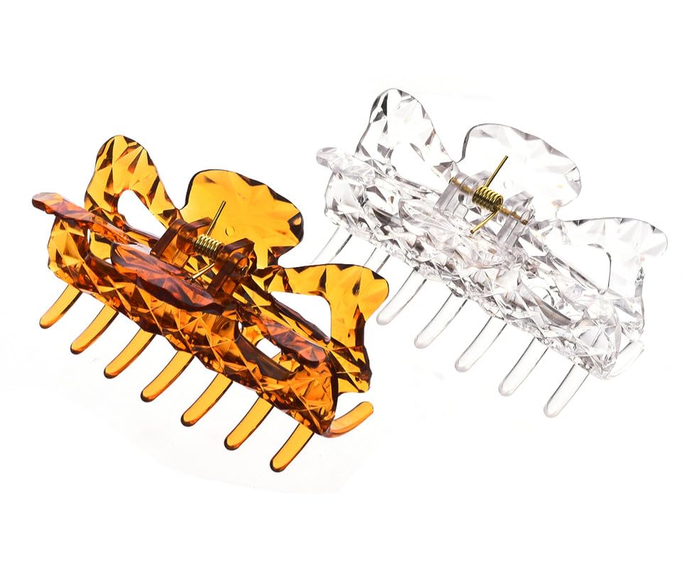 Generic - Large Hair Claw Clips for Thick Hair Non-Slip Strong Hold Hair Clips Open Shape Claw Clip Fashion Accessories Hair Clamps Clip Big Hair Claw for Women Girls 2 Pcs - White & Yellow