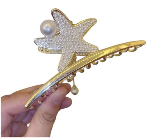 LLAOIMB - مشابك شعر كبيرة وأنيقة للنساء بتصميم صدف نجم البحر، مشابك شعر ذهنية ذهبية مع تصاميم لؤلؤ أبيض وأزرق، اكسسوارات شعر للشاطئ وإطلالات الربيع والصيف