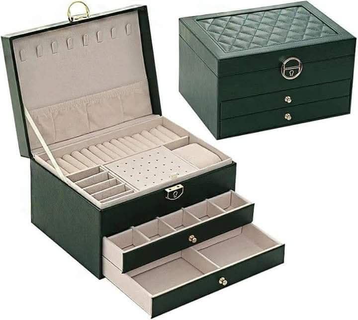Generic - Large Jewelry and Accessories Organizer Box with Multiple Drawers, 3 Colors, Padded Lid and Gold Lock