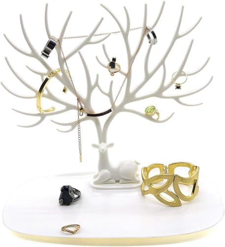 - Elegant Deer-Shaped Organizer for Daily Use: Enjoy a clutter-free vanity with this beautifully designed jewelry organizer tree featuring a graceful deer silhouette and wide antlers for hanging accessories. Its large size makes it perfect for managing necklaces, earrings, rings, and bracelets while adding a stylish decorative touch to your bedroom, dressing area, or bathroom countertop.