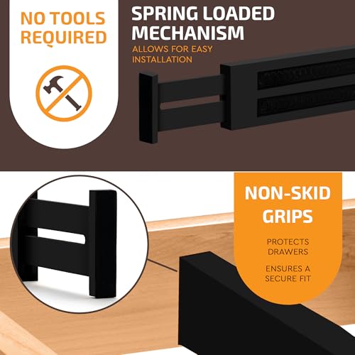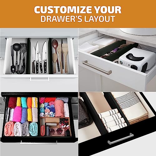 - - PLEASE MEASURE YOUR DRAWER FIRST - The deep drawer organizer set comes with 6 adjustable drawer separators, each divider measuring 17.7 - 22” x 2.6". Extra convenient in the kitchen as drawer dividers for large utensils such as ladles, spatulas, and more.