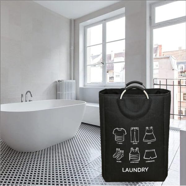 - PRACTICAL GRAPHICS: Features clear clothing category illustrations on black fabric for easy laundry sorting and organisation
