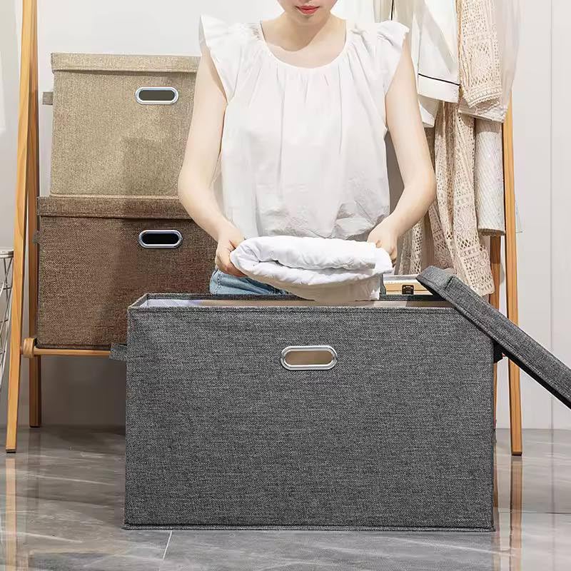 Generic - Large Linen Storage Box with Lid – Foldable Storage Box for Organizing Clothes, Blankets, Toys – 30x40x60cm – Sturdy Material & Chic Shape – Suitable for Closet, Dressingroom
