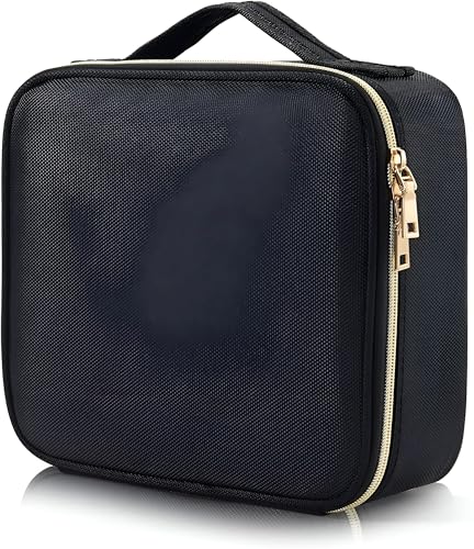 Generic - شنطة مكياج كبيرة - مساحات تخزين داخلية واسعة لمستحضرات التجميل والاكسسوارات، قماش مقاوم للماء، سطح سهل التنظيف، مثالية للسفر والاستخدام المنزلي باللون الاسود الأنيق