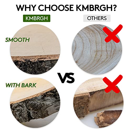 KMBRGH - Large Natural Birch Wood Slice 38-40cm | Kiln Dried Birch Wood DIY | Home Decor Arts & Crafts | Wooden Discs Wall Décor Wedding Decorations Wooden Rustic Cake Stand | Log Slices | Wooden Centrepieces