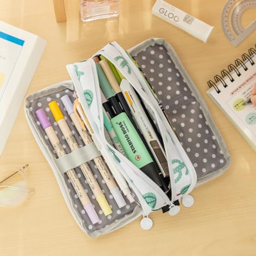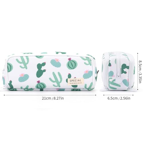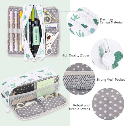Parlberd - حافظة اقلام رصاص كبيرة بسعة كبيرة من 3 اقسام من القماش، شنطة ادوات مكتبية بسيطة للمدرسة والجامعة، منظم مكتب للمراهقين والبنات والبالغين والطلاب (صبار اخضر)
