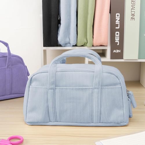 GTVGJH - Large Pencil Case Pouch (Blue), Extra Big Pencil Bag with 5 Compartments, Pen Bag Wide Opening, Soft Corduroy Pencil Pouch Organizer with Zipper, Cute Aesthetic Office Supplies for Teen