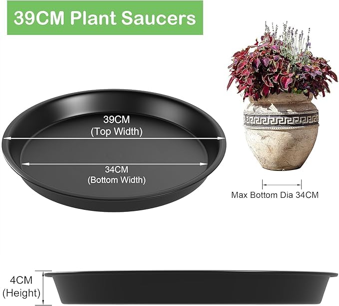 Generic - Large Plant Saucer 39cm Drain Tray Black Flower Pot Grinding Heavy Duty Plastic Water Catcher for Indoor or Outdoor Use