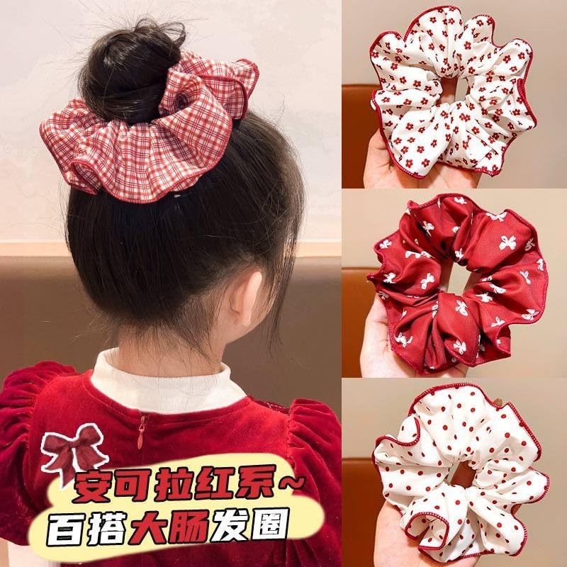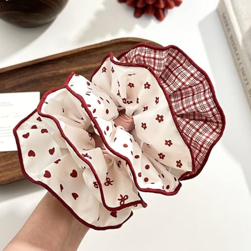 Generic - Large Red Heart Dots Hair Scrunchies Set of 3 Women Hair Accessories Vintage