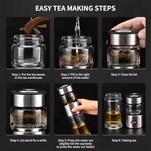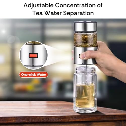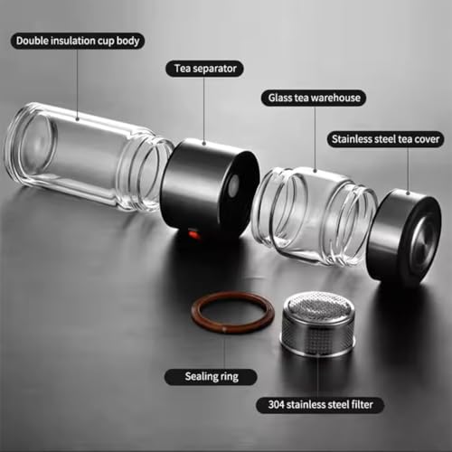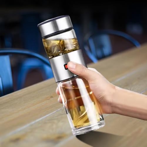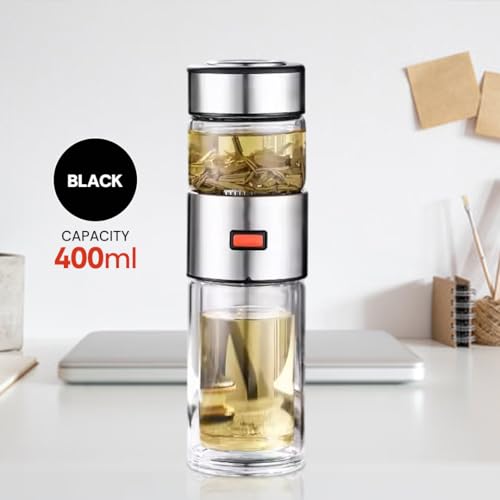 - مصفاة شاي مدمجة - يتميز بمصفاة قابلة للفصل من الفولاذ المقاوم للصدأ لتخمير أوراق الشاي السائبة أو مخاليط الأعشاب أو مشروبات الفاكهة مباشرة في الزجاجة