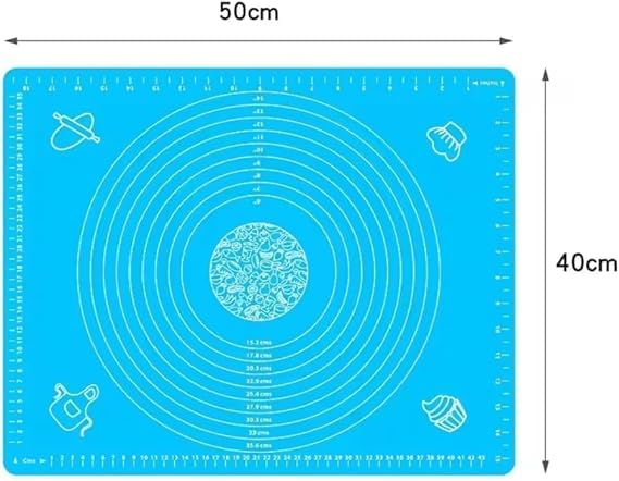 MJ - Large Silicone Pastry Mat with Measurements, 50 x 40 cm, Blue, Non-Stick Baking Surface