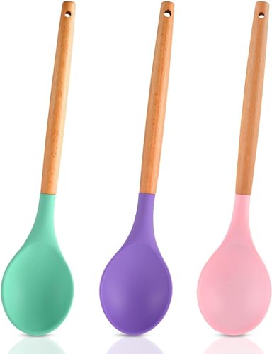 - ✪ Silicone Large Spoons with non-stick wood handle and heat resistant for comfortable and safe use.